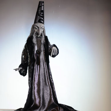 Er ist eine sogenannte Halbmarionette: er hat keine Beine, kann sich somit schlangengleich auf dem Boden bewegen um sich dann magisch in die Lüfte zu erheben.