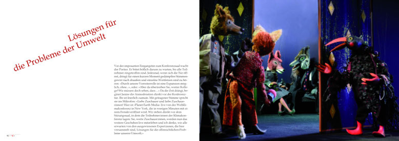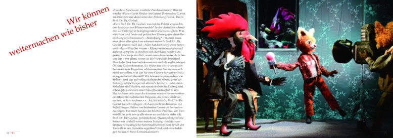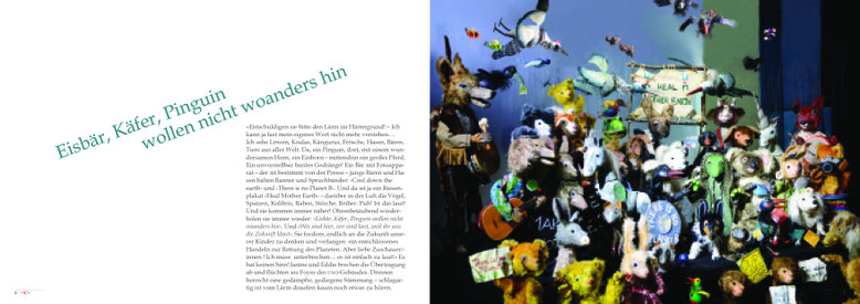 Der Bildband erzählt in über 50 ganzseitigen Foto-grafien in einer Art Fabel von der Klimaerwärmung und ist sozialkritisch, satirisch und politisch.