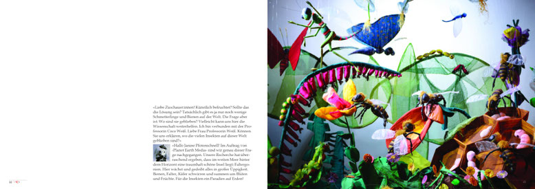 Die Konsequenz, dass es immer weniger Insekten gibt spürt man auf der Insel «Faltergonien» nicht, wo es wunderbar summt und brummt.